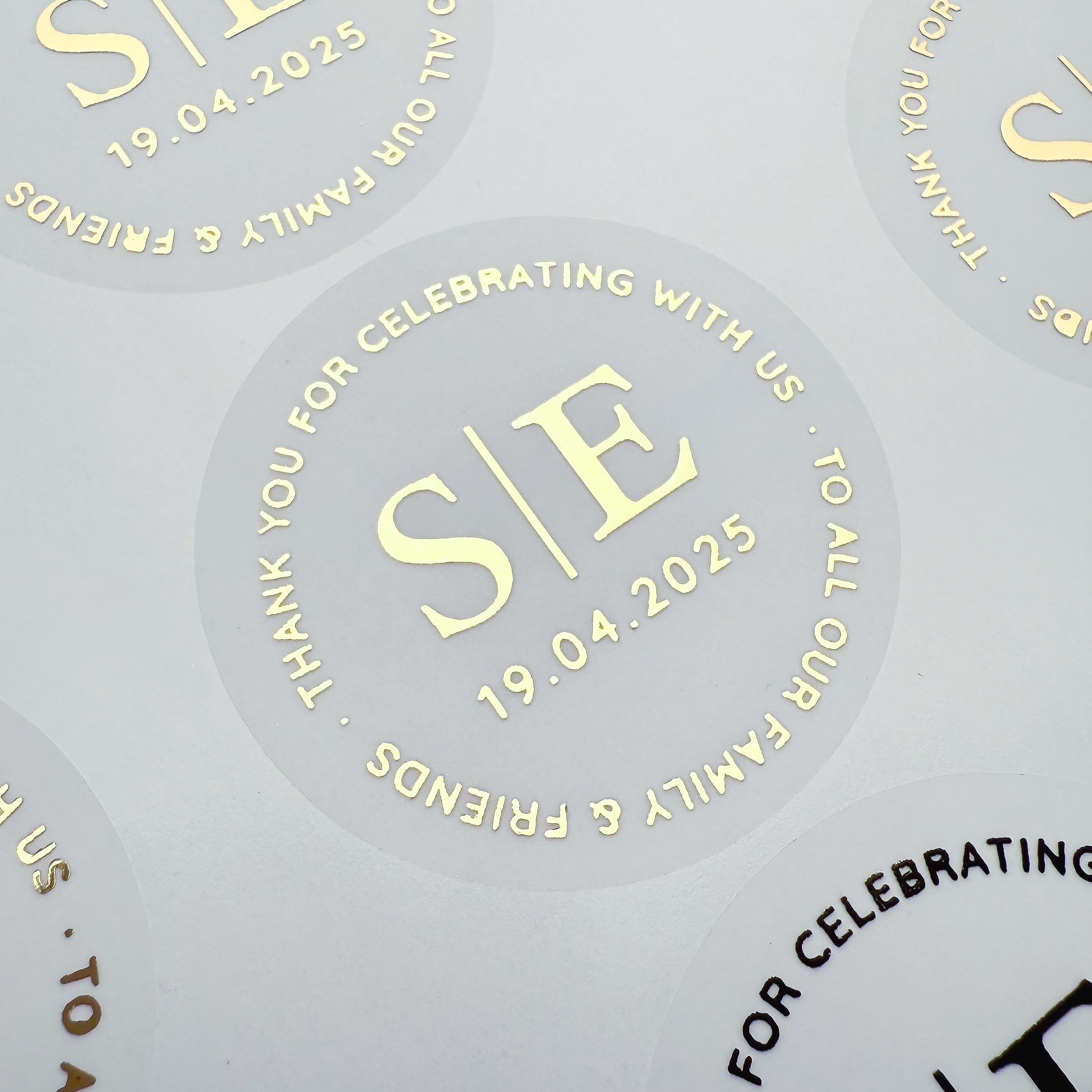 Beautiful personalised initial wedding stickers handfinished with foiling to create a gorgeous luxurious feel.