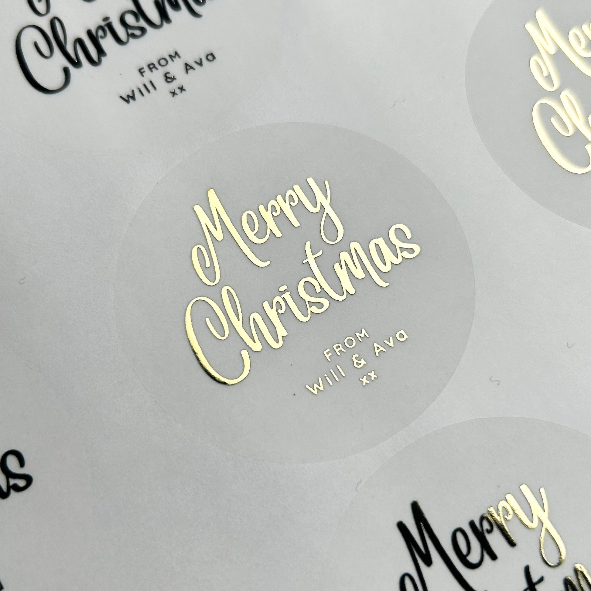 Beautiful personalised christmas stickers handfinished with foiling to create a gorgeous luxurious feel.